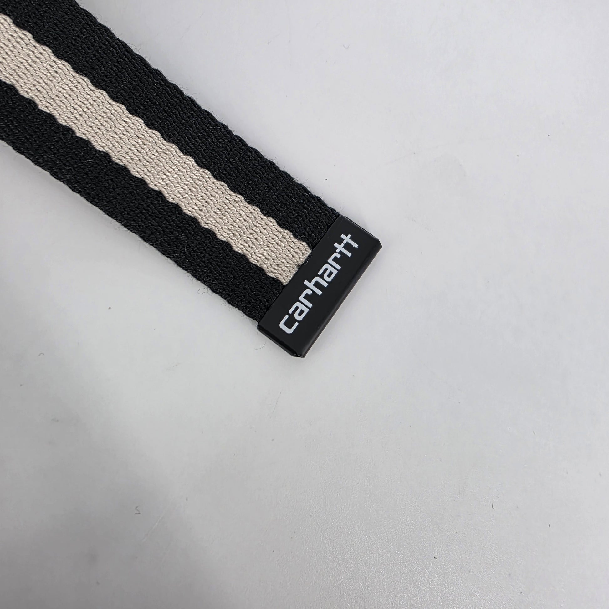 Elevate your casual looks with the Carhartt Material Belt - Black & White Stripe. This versatile accessory features a durable woven strap with bold black and white stripes, complemented by a sleek matte black metal buckle engraved with the Carhartt logo. Designed for easy adjustability and everyday wear, it brings a perfect balance of workwear heritage and streetwear style.