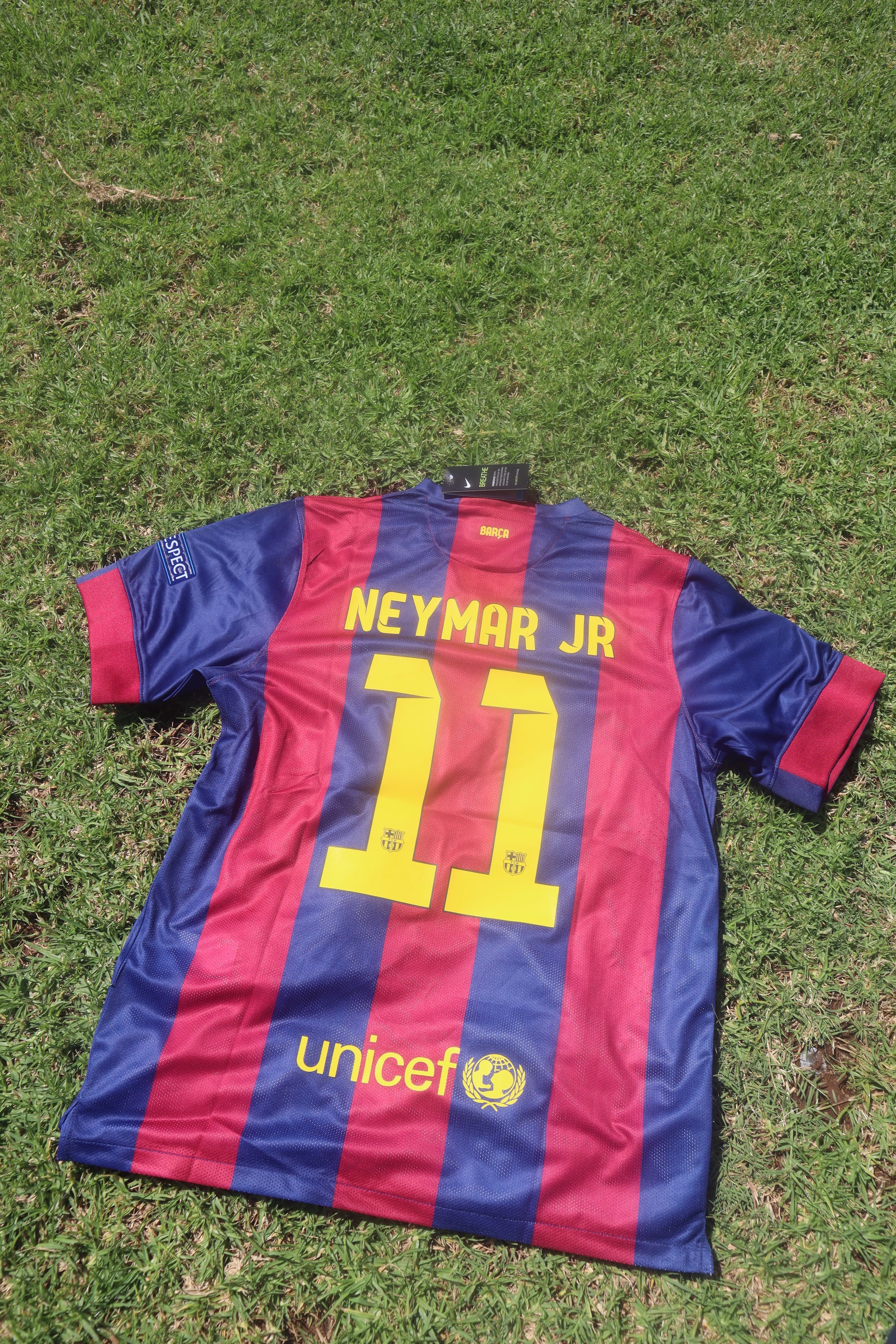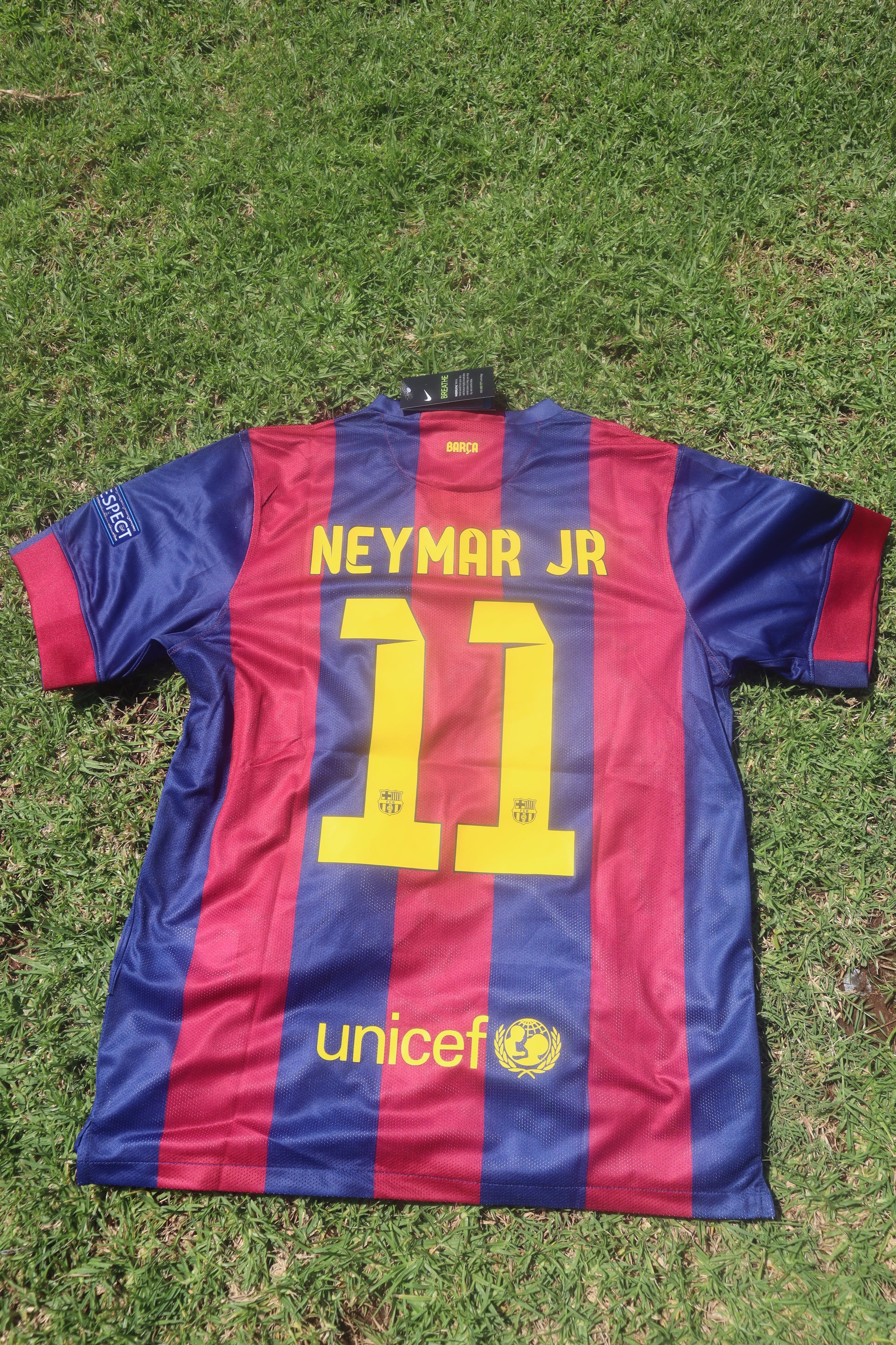 This FC Barcelona 2014/15 Home jersey captures one of the most iconic seasons in the club’s history. That campaign saw Barça complete a historic continental treble—winning La Liga, the Copa del Rey, and the UEFA Champions League—cementing their status as Europe’s dominant force under Luis Enrique. The shirt is for Neymar Jr (11), who in 2014/15 enjoyed the finest season of his Barcelona career, forming the legendary MSN trio alongside Messi and Suárez and playing a decisive role in all three major trophies.