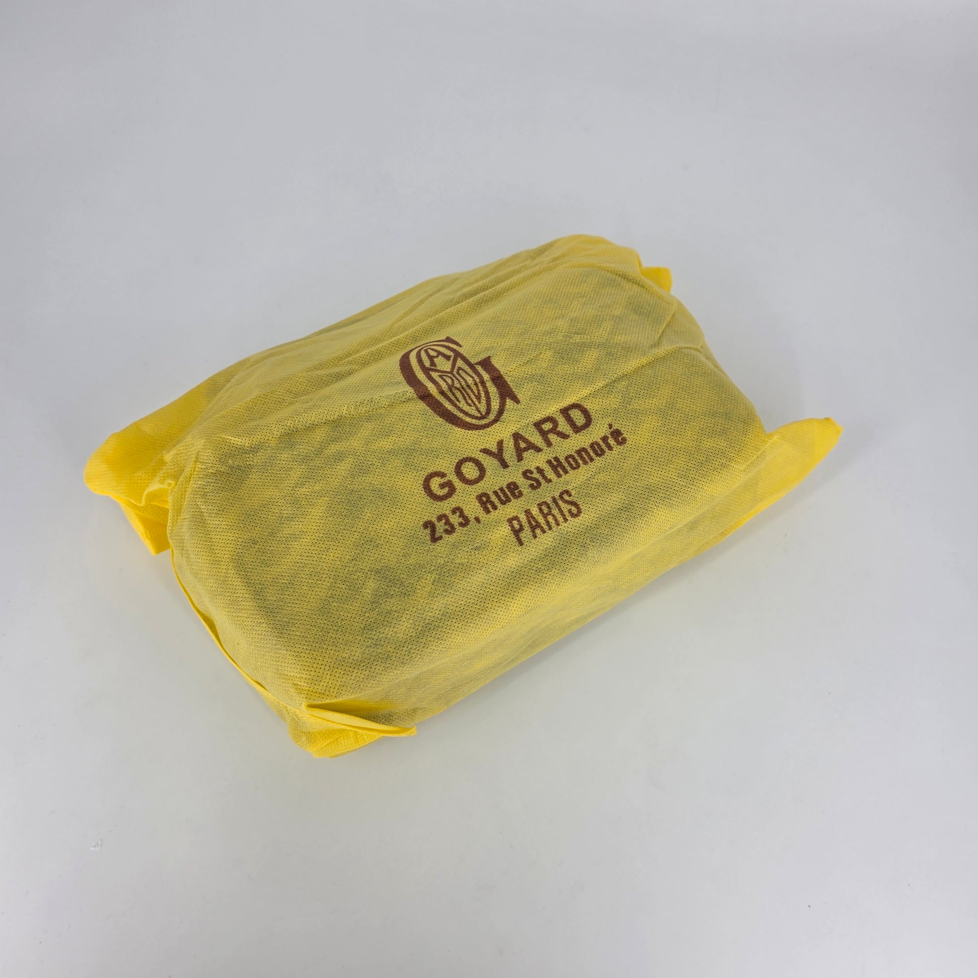 Features: Goyardine coated canvas, leather trim, adjustable shoulder strap, dual zip compartments
