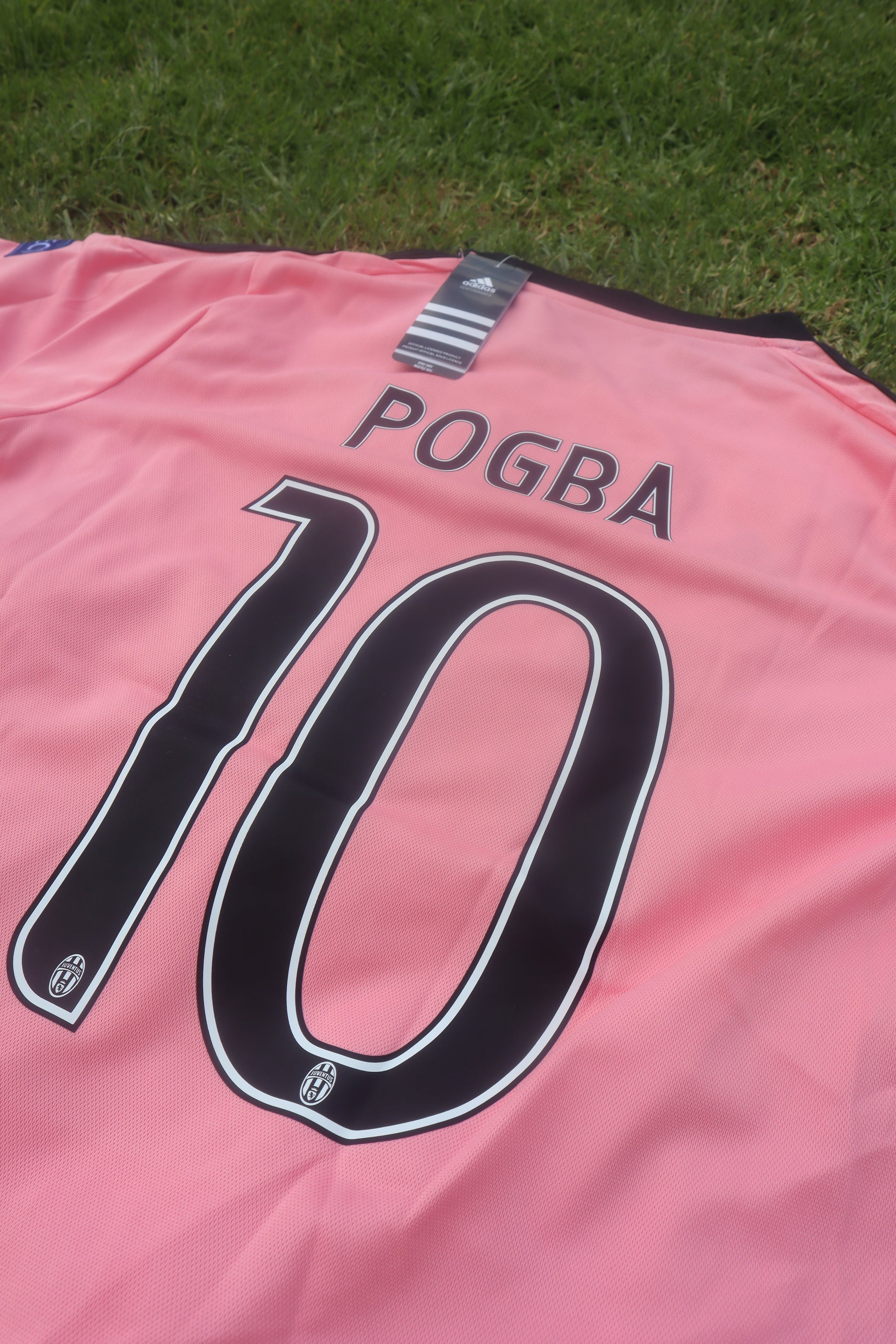 That season saw Pogba deliver his most complete campaign in a Juventus shirt—combining power, flair, and end product, finishing as the club’s top scorer in Serie A and earning a place in the UEFA Team of the Year. Finished in adidas’ bold pink away colourway with black three-stripes, the Jeep sponsor, and Champions League starball sleeve patch, this jersey captures Pogba at the peak of his first Juventus spell, just before his record-breaking move back to Manchester United.