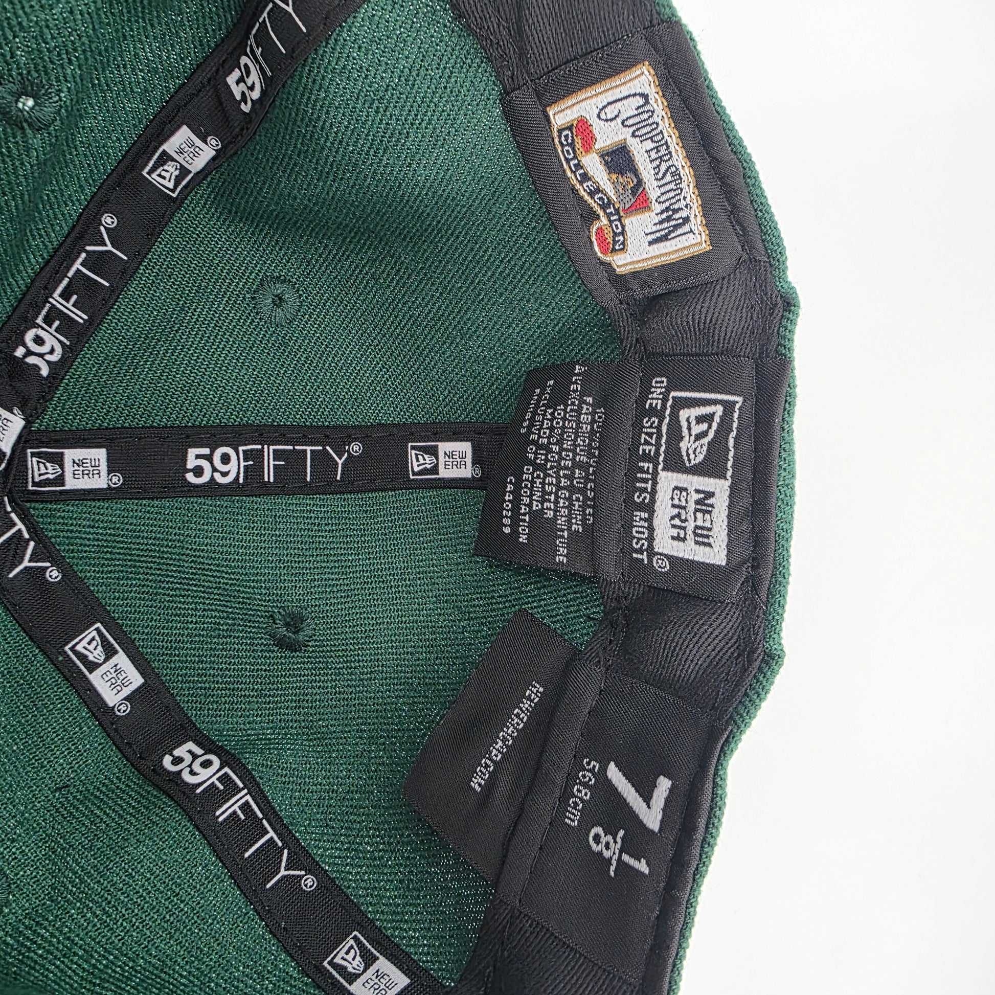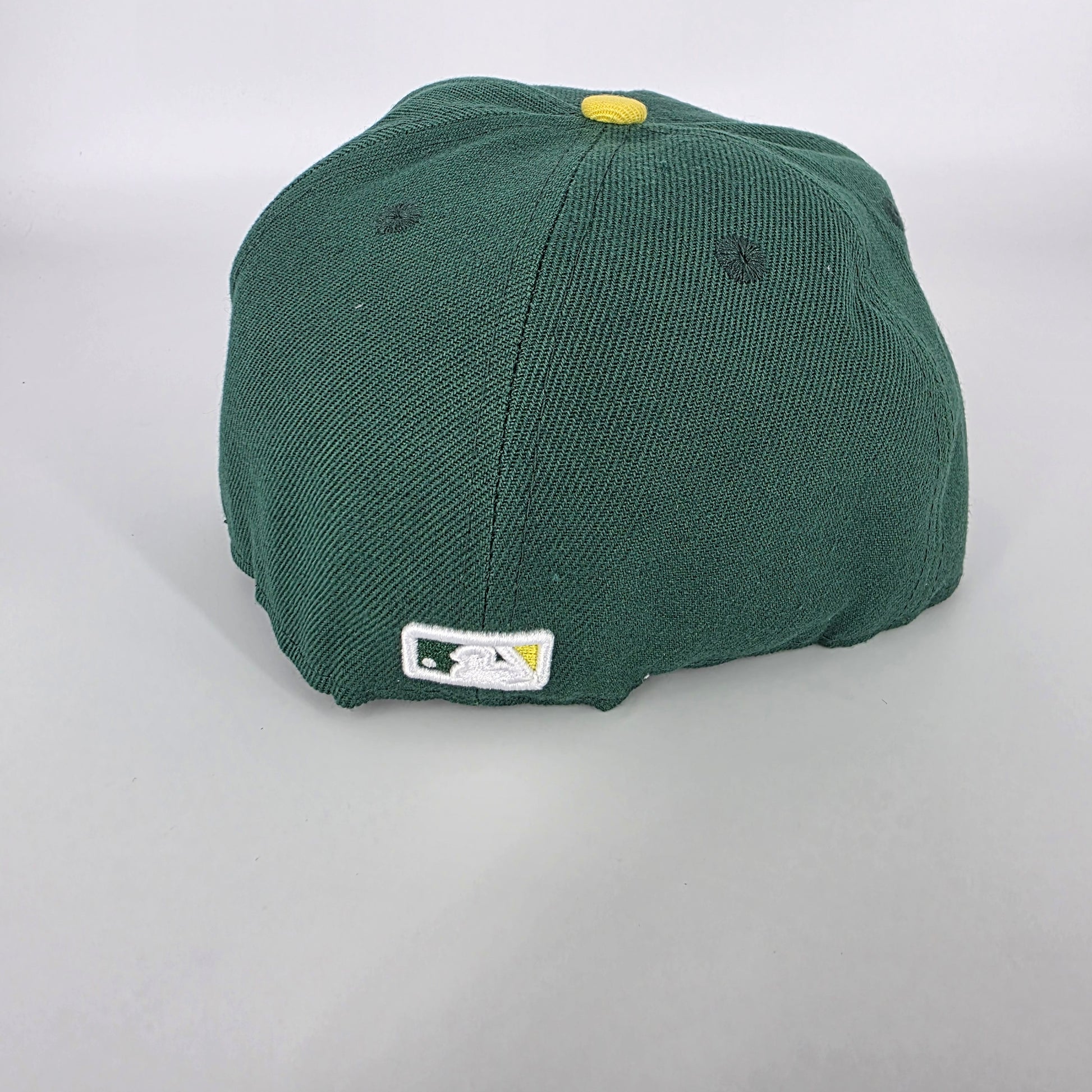 Show your team pride in style with this New Era 59FIFTY Oakland A’s Fitted Cap. Featuring a structured crown, yellow flat brim, and the classic white A’s embroidery on deep green wool-blend fabric. Comes in a fitted 7 1/8 size (56.8 cm).