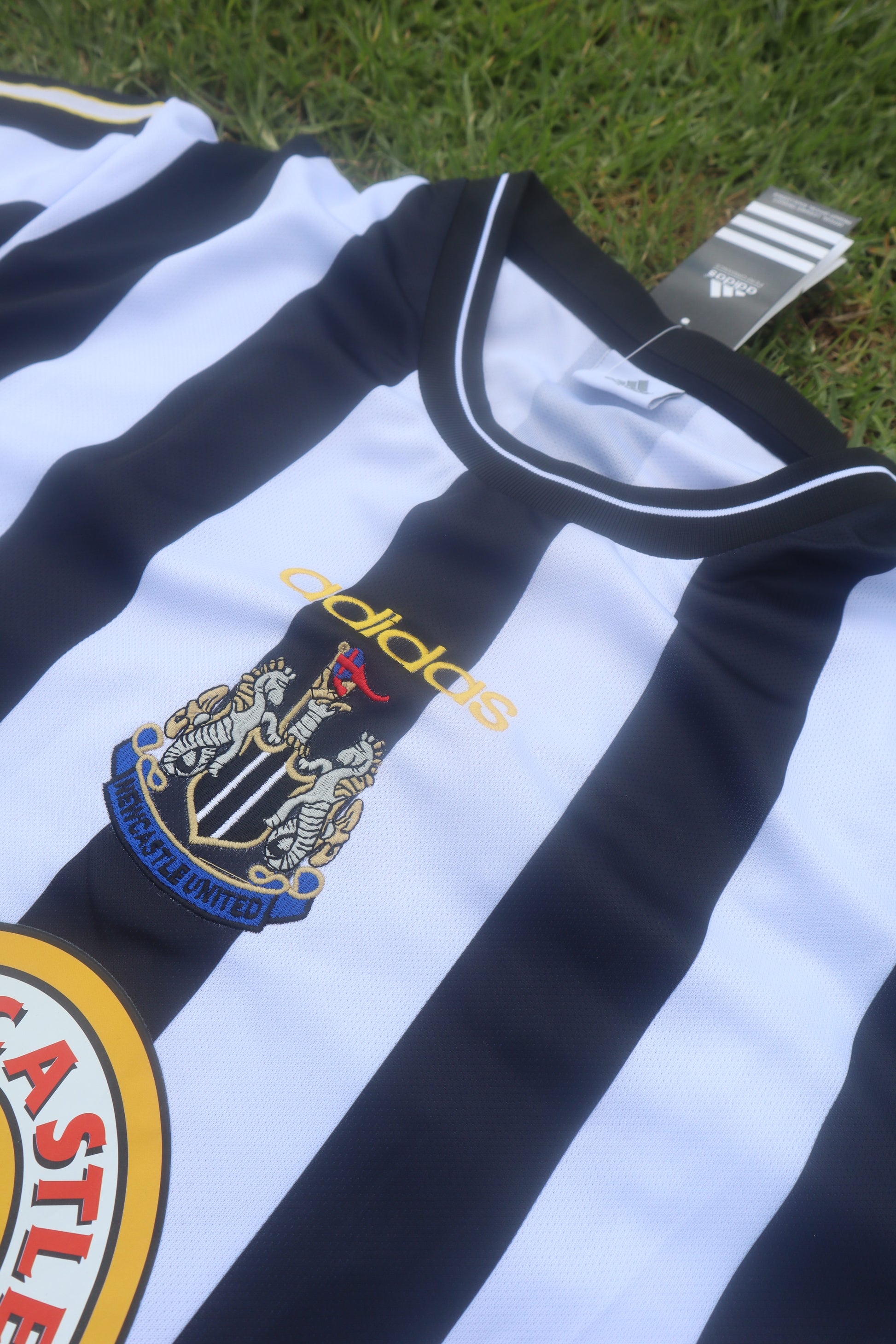During the 1997–99 period, Shearer was at the height of his powers—consistently among the league’s top scorers and wearing the captain’s armband, while continuing his climb toward becoming the Premier League’s all-time leading goalscorer. Finished with adidas’ classic black-and-white stripes, gold detailing, the Newcastle Brown Ale sponsor, and Shearer’s iconic name and number, this jersey is a true matchday classic—raw, uncompromising, and synonymous with Tyneside football.