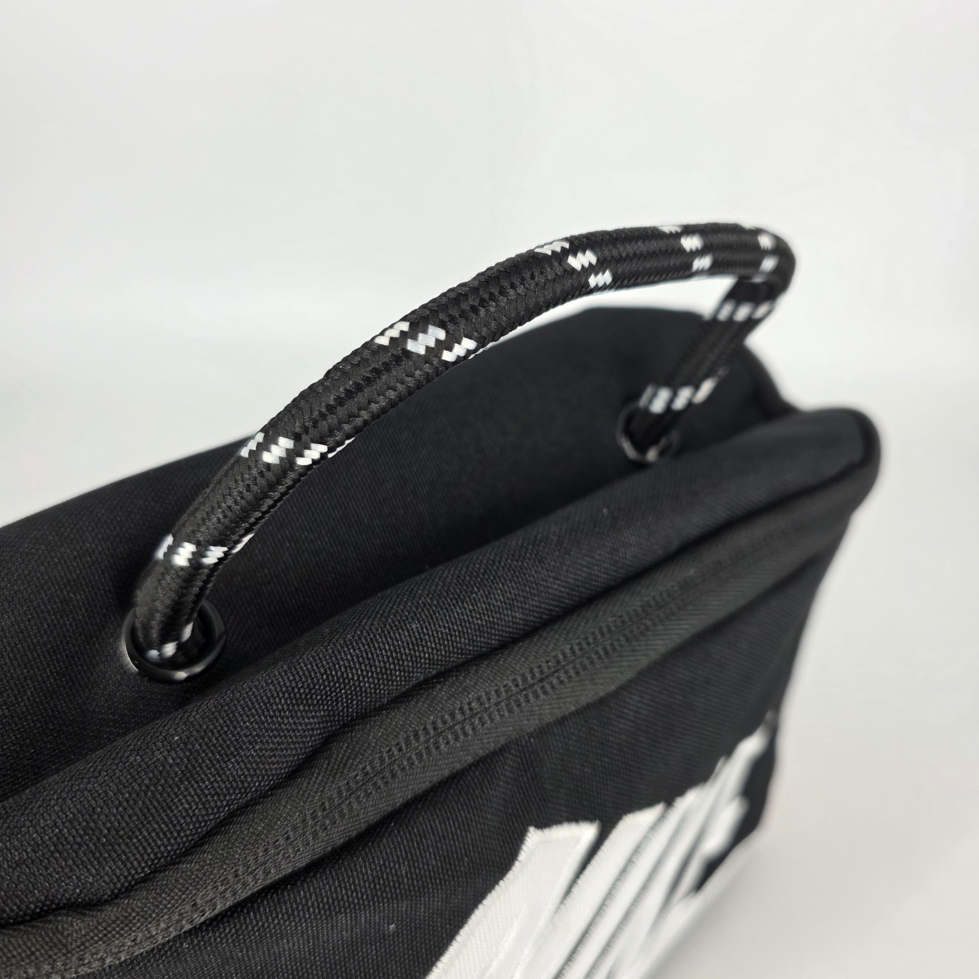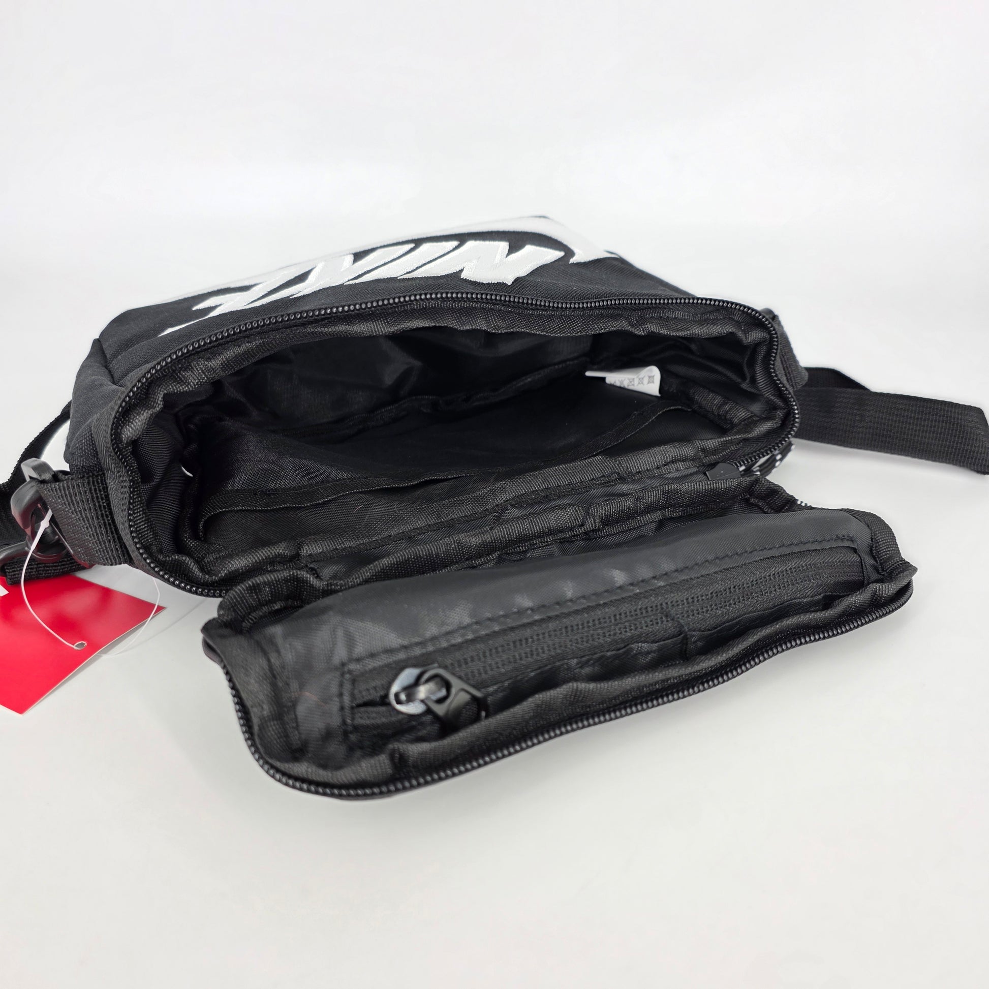 Step up your streetwear game with this Nike Carryall Side Bag in Black. Designed with a bold embroidered Nike logo across the front, this versatile bag blends function and style seamlessly. The compact yet spacious build features a secure zippered main compartment, an interior pocket for essentials, and an adjustable shoulder strap for everyday convenience. A rope-style top handle adds a unique touch, while the back panel includes signature Nike branding and “Just Do It” detailing.