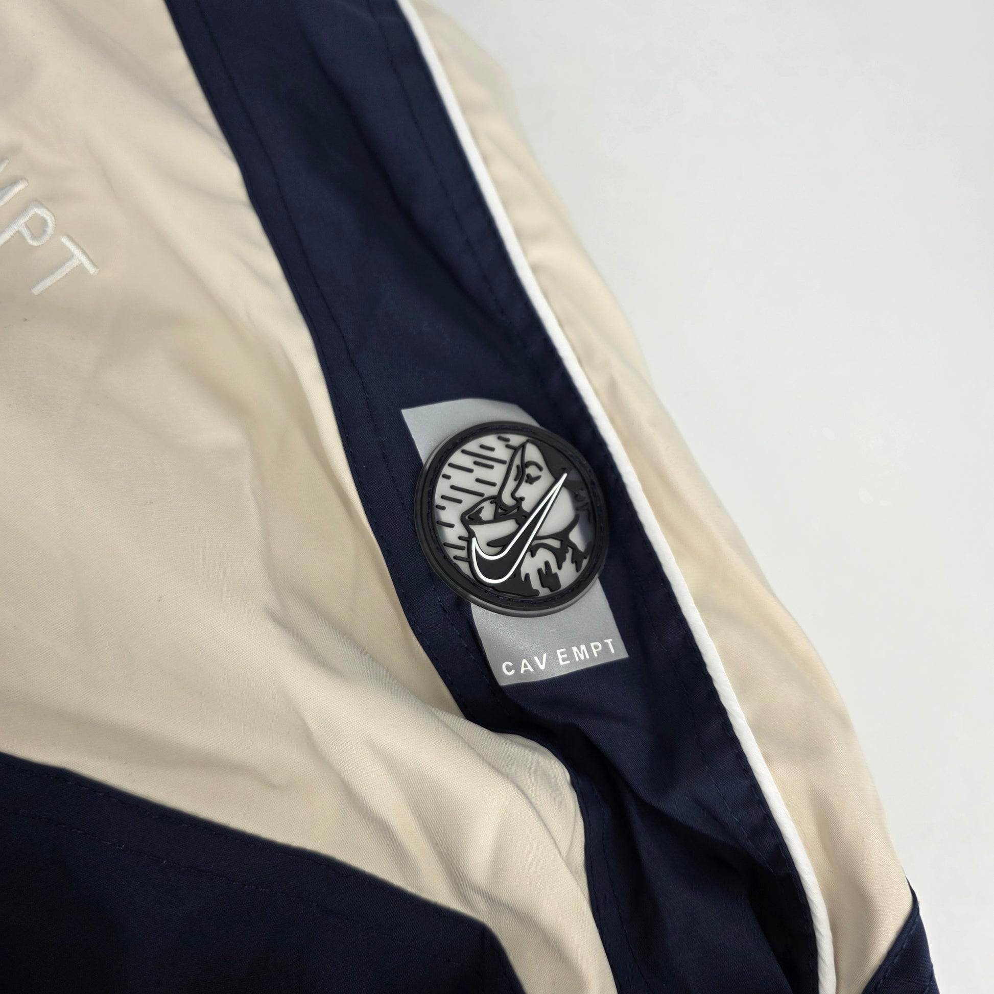 A standout collaborative piece from Nike and Cav Empt, blending technical sportswear with futuristic street aesthetics. The jacket features bold paneling, subtle branding on the chest, and a graphic print on the back that reflects Cav Empt’s signature digital-inspired design language. A rare and collectible outerwear piece for fans of experimental fashion.