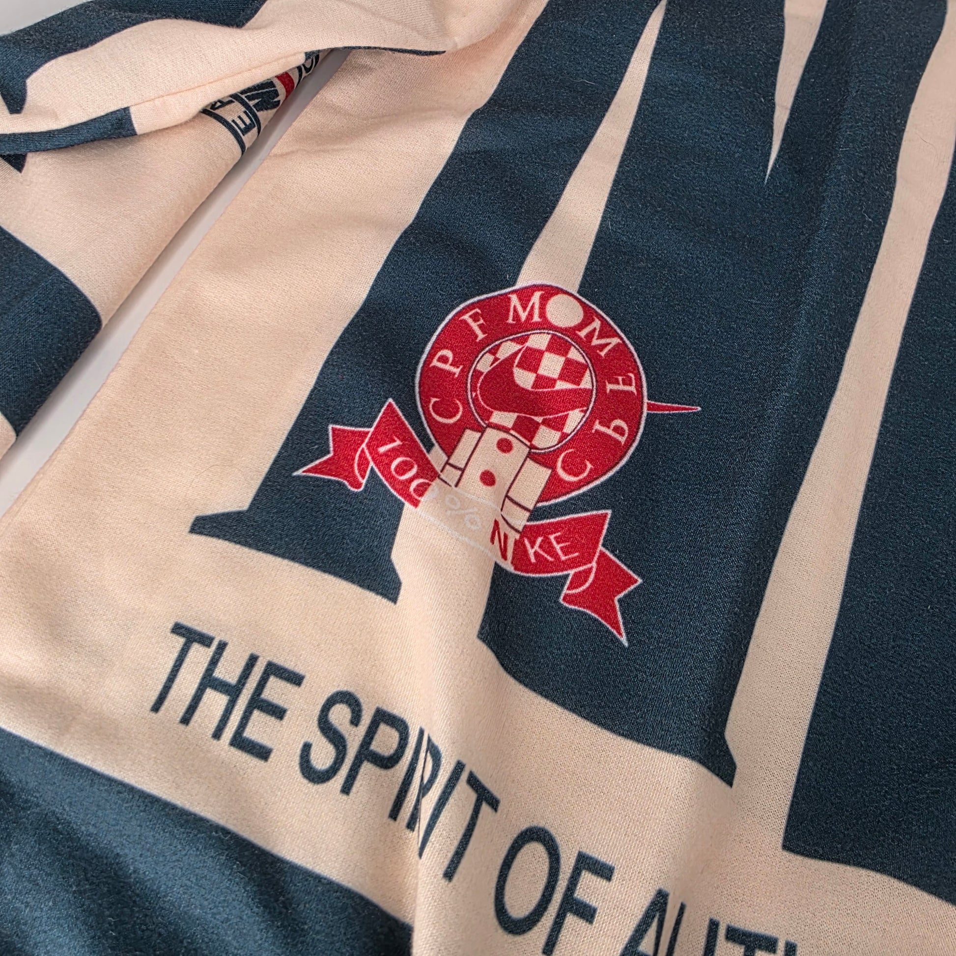 A bold and playful long-sleeve polo from the Nike x CPFM collaboration, featuring oversized typography, mixed graphics, and all-over branding. This piece merges vintage sportswear energy with CPFM’s irreverent, art-driven approach, making it a true statement item. Perfect for collectors or anyone wanting something unapologetically different.