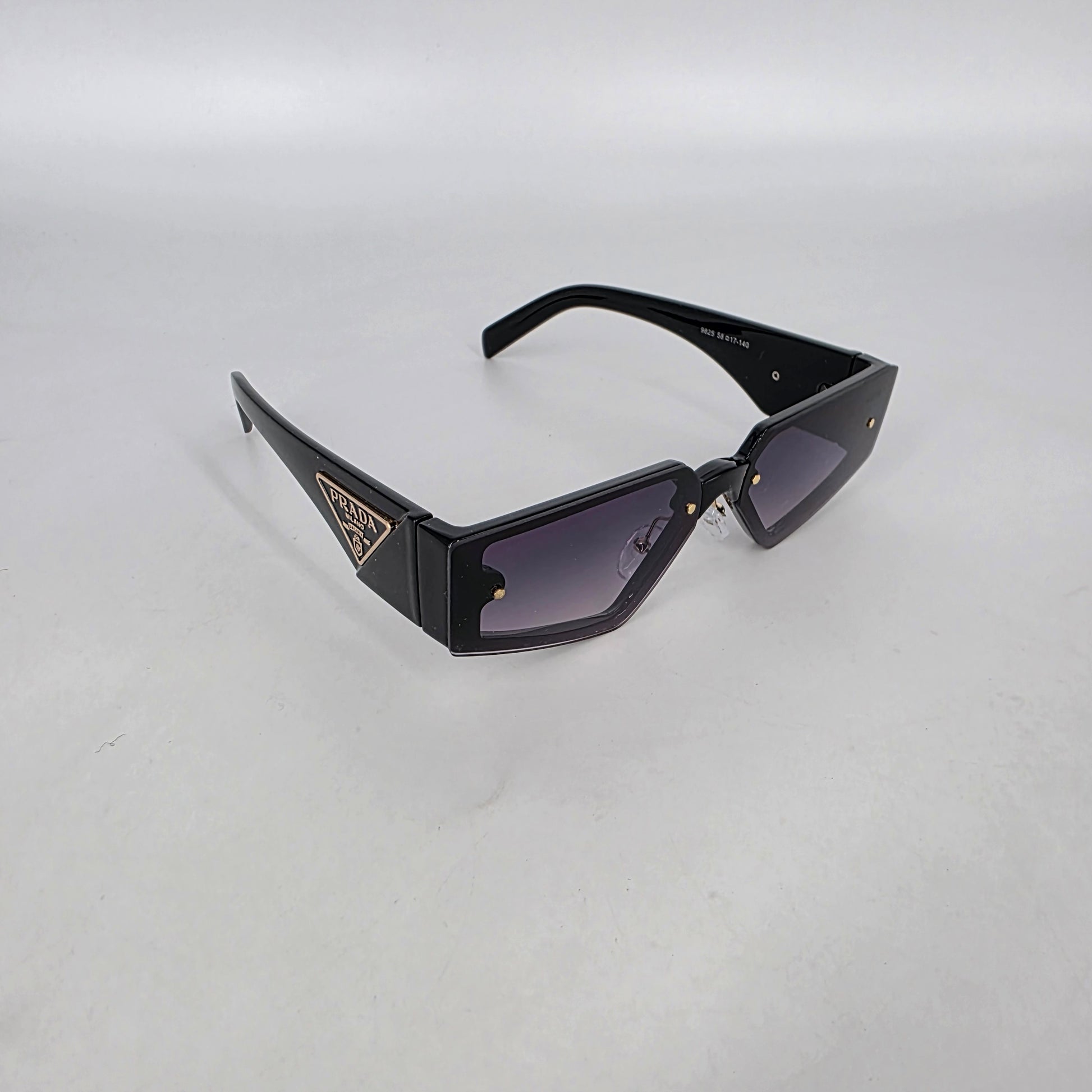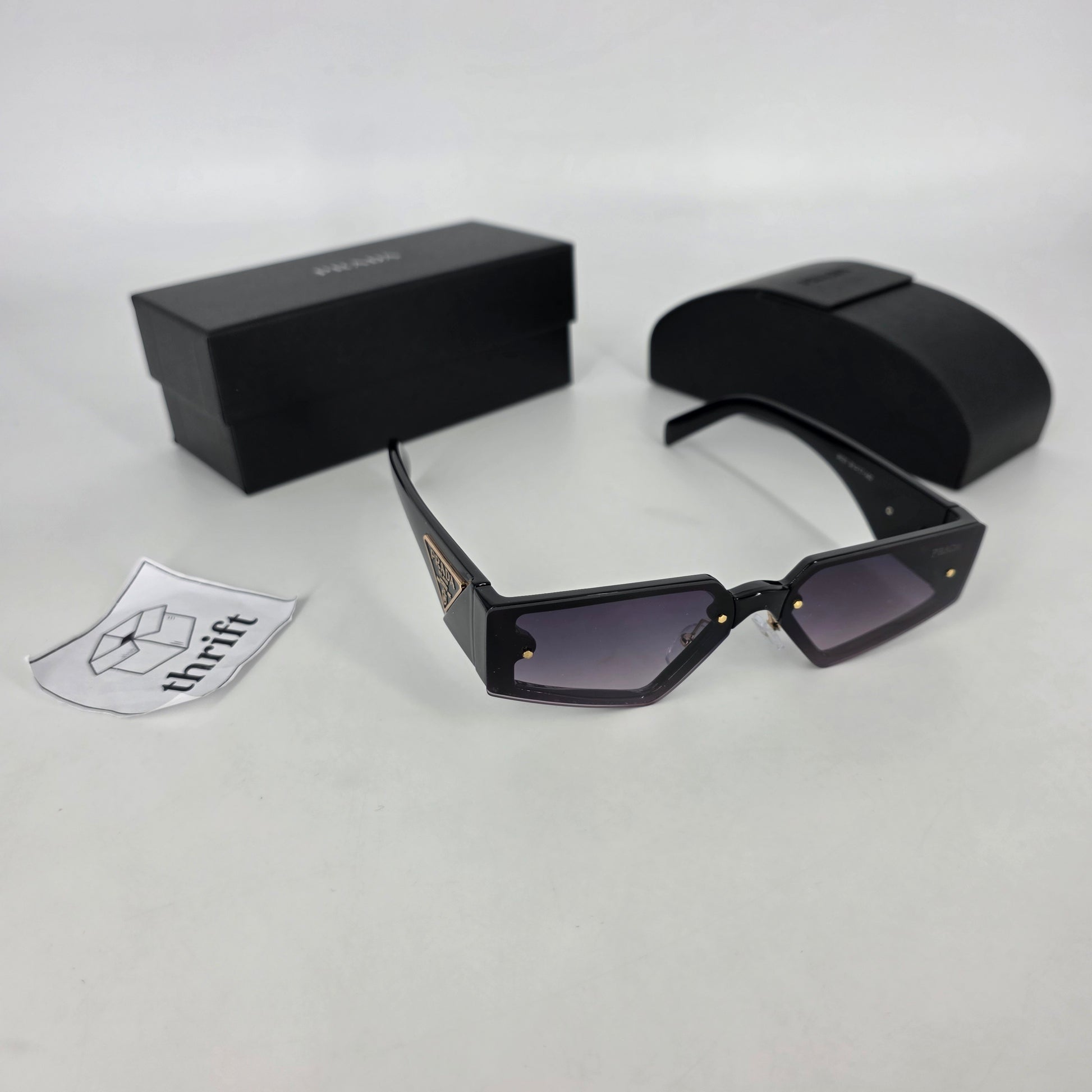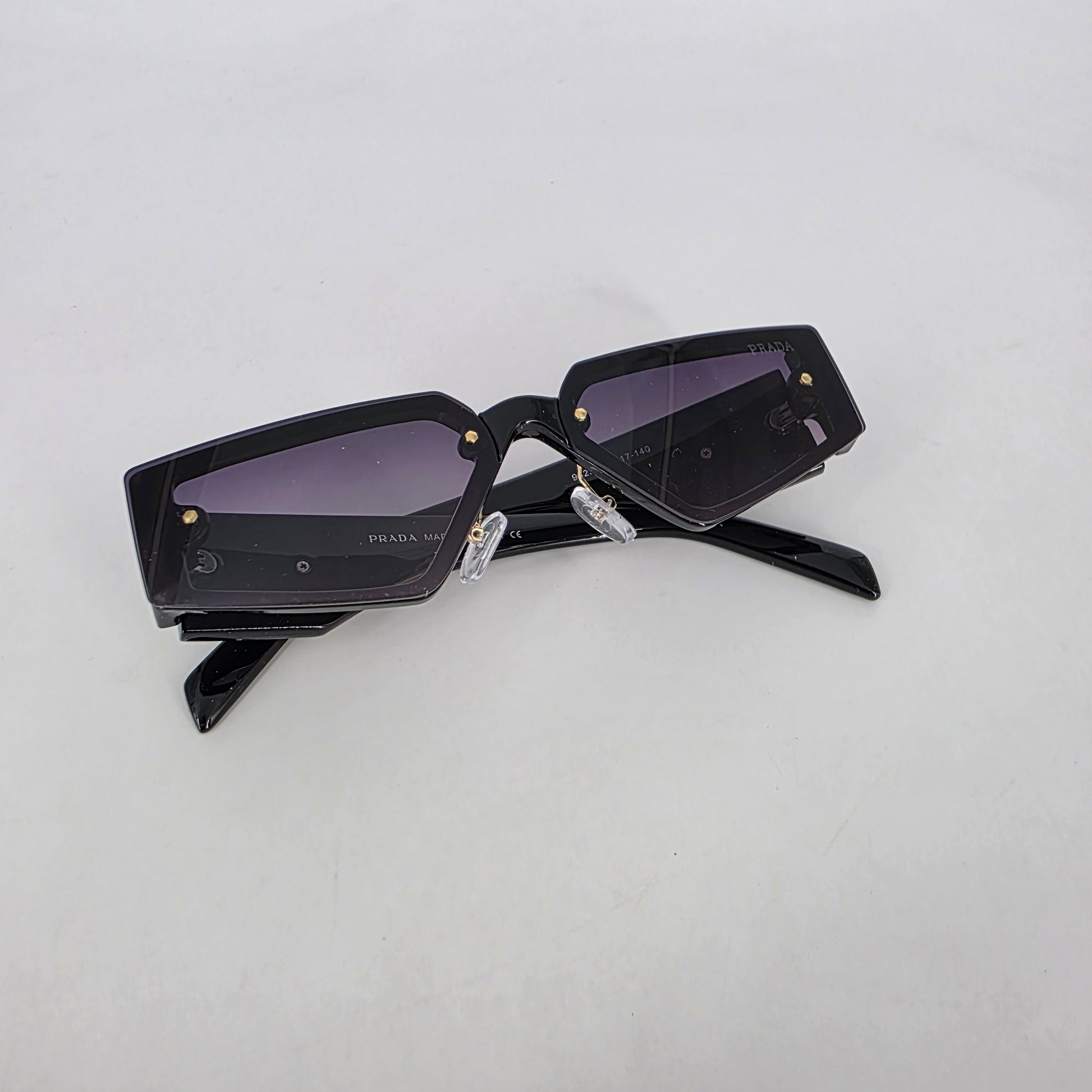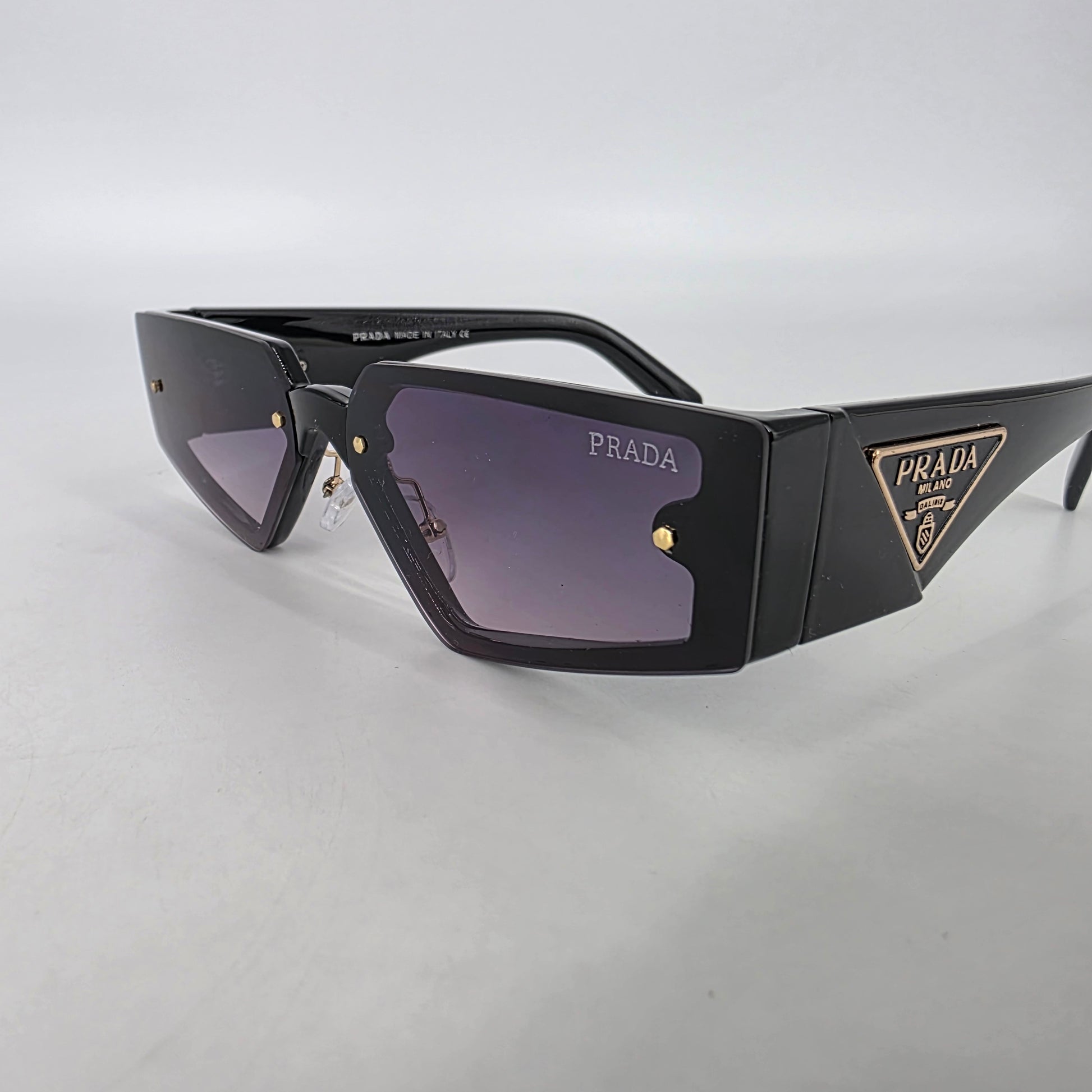 The Prada PR58ZS Sunglasses in Black blend futuristic angles with timeless luxury. Featuring sharp geometric lenses and the iconic Prada Milano triangle logo on the arms, these shades are crafted from premium acetate for durability and comfort. The dark gradient lenses offer sleek protection with a high-fashion finish.