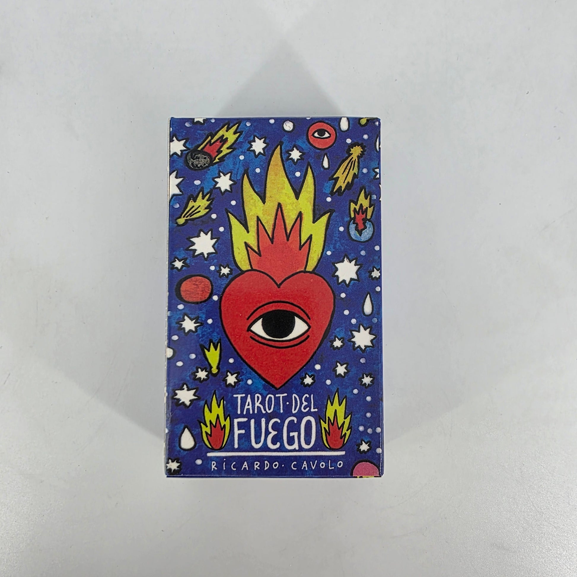 Bold, fiery, and unapologetically expressive, the Tarot Del Fuego deck by Ricardo Cavolo transforms traditional tarot into a vibrant explosion of colour and symbolism. With its striking, surreal illustrations, this standard-size deck (approx. 7cm x 12cm) is perfect for expressive, creative, and intuitive readings. Includes a digital guidebook for easy access to meanings and insights.